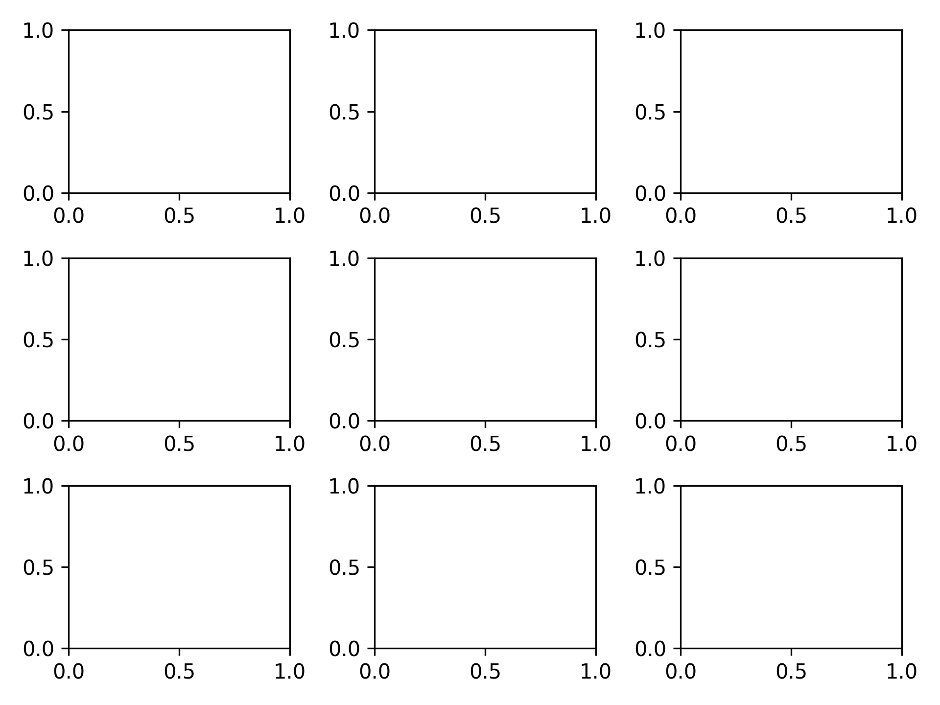 fig, ax = plt.subplots(3, 3)